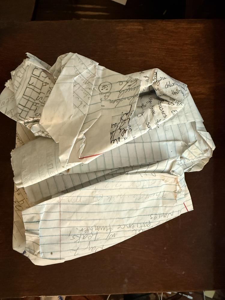 Well, dear reader, folks really liked the primitive camp logbook entries. So we pulled together another selection of Primitive Camp logbook thoughts. This collection is particularly special, as we extracted a wadded up bundle of hiker scribbles smashed into a Ziploc and compressed into the back of the box at the Four Notch Primitive Campsite. What made this so special was that the first entry was from the volunteers who constructed the primitive camp back in February 2015. These hiker perspectives have been tucked away for over 10 years now. It’s like untangling the dead sea scrolls. See the photo below—that’s how we found the pages.